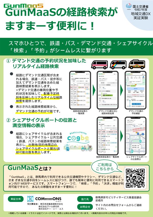この度、GunMaaSからデマンドバスの予約やコグベの空車情報の確認が簡単にできるようになりました✨