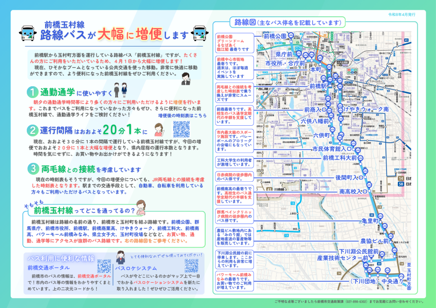 その第一弾として、前橋市の公共交通網の“幹線軸”である 前橋玉村線が令和8年4月1日から大幅に増便 されます。