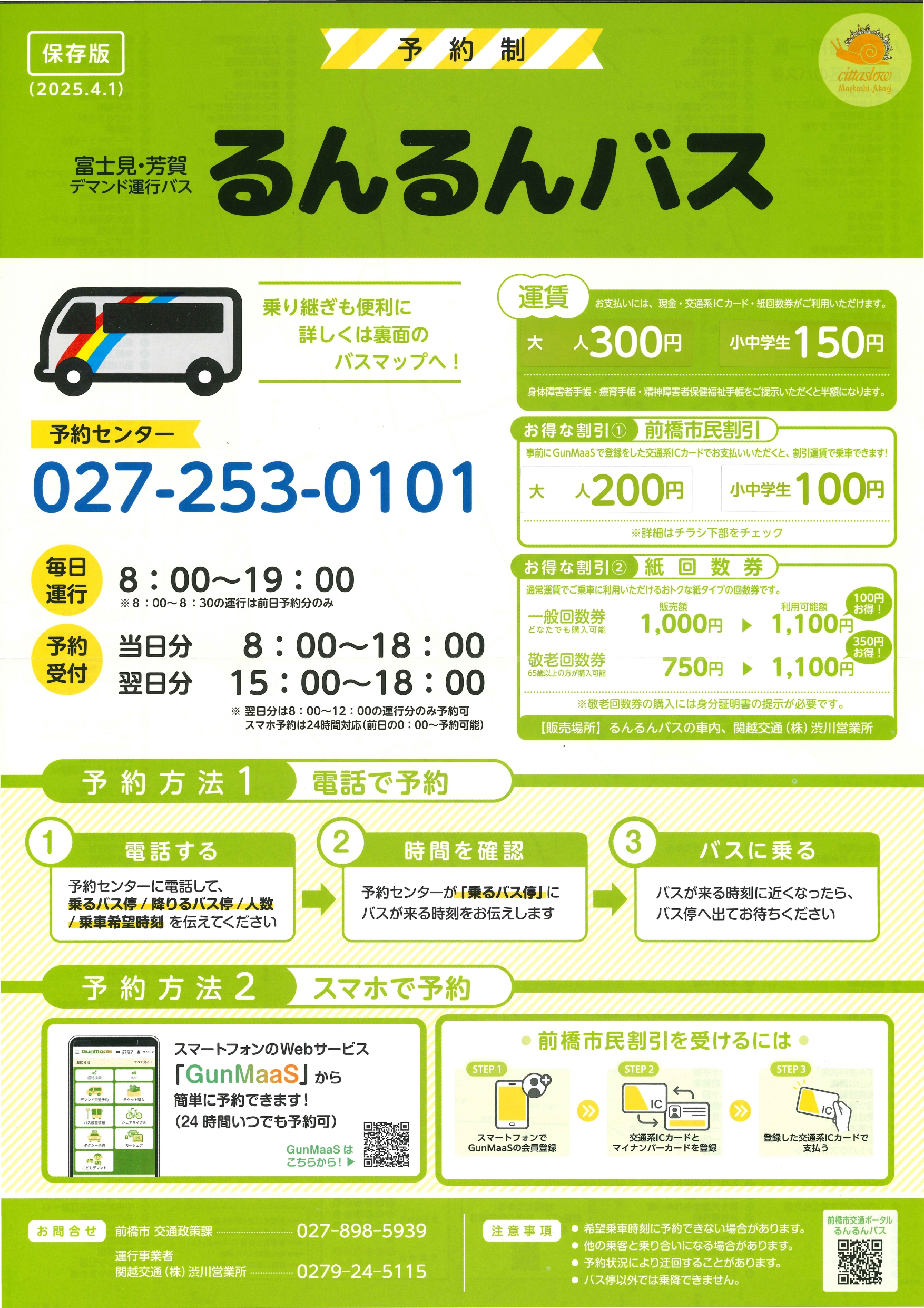 「るんるんバス」は利用者からの予約があったときに運行する事前予約制のバスです。